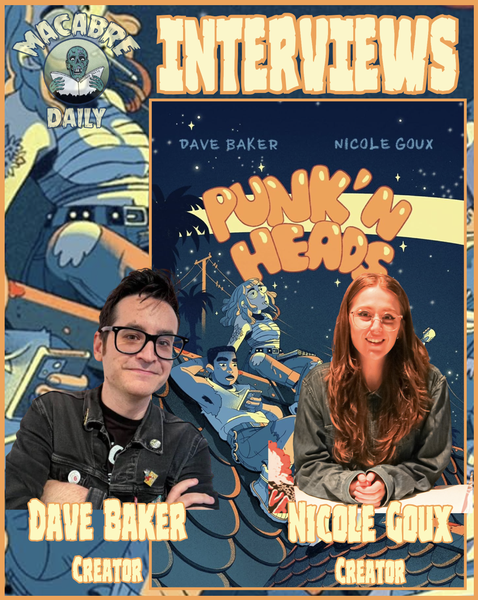 Macabre Daily: If you could each pick one album for a reader to listen to pair with Punk’n Heads, what would it be?Dave Baker: Oh, man. Probably either “Walks Among Us” by the Misfits or “Glow On” by Turnstile. I was listening to both of those records while working on this and there’s a bunch of hidden little things gems in the book that reference them. I also like “Her’s” a lot. Different genre, I know. But I’m sure there’s something in there as well. So, Songs of “Her’s” would be another solid...